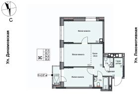 Продаётся 3-комнатная квартира в строящемся доме (Дом 1), срок сдачи: II-кв. 2027, общей площадью 54.8 кв.м., на 4 этаже. ЖК "Локомотив" - это жилой комплекс, состоящий из трех домов, объединенных стилобатом. Удобное расположение, 15 минут до центра.