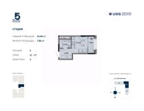 Продаётся квартира-студия от девелопера UDS в ЖК "Пять континентов" в 3 доме комплекса. Секция 2 на 16 этаже.