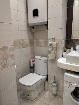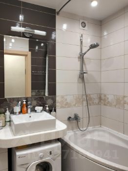 Санузел совмещенный, выполнен в светлых тонах с качественной отделкой.