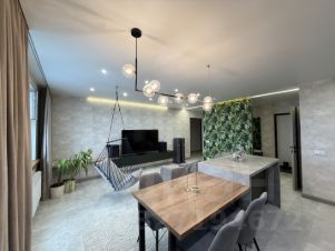 Выполнен качественный ремонт с дополнительной шумоизоляцией. Вся современная техника и мебель остаются — вы просто завозите чемоданы и живете.