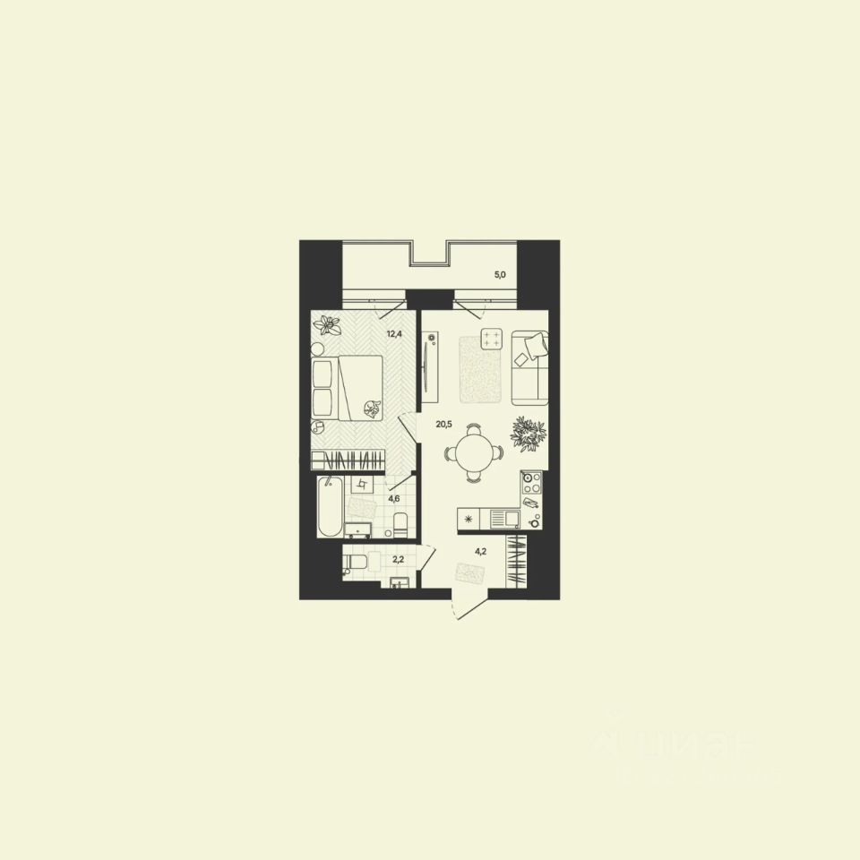 Уютный лот для тех, кто ценит комфорт. Светлая гостиная, изолированная спальня и тишина за окном - всё, чтобы отдохнуть и восстановиться. Идеальный баланс приватности и открытости.