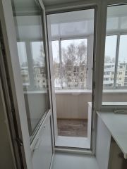 Балкон капитально застеклён, утеплён и расширен, превратившись в дополнительное функциональное пространство, которое можно использовать как кабинет или зону для отдыха.