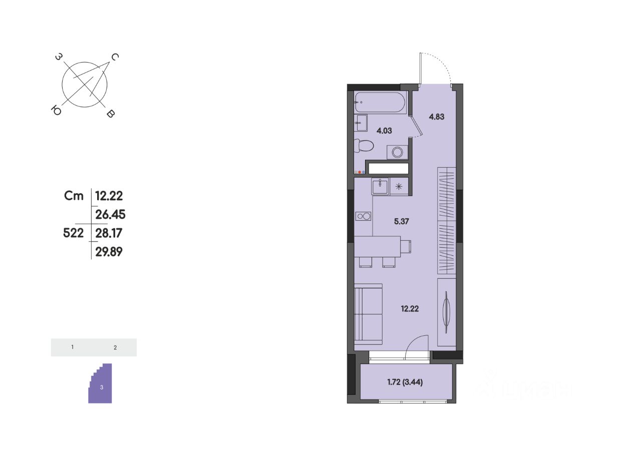Общая площадь28,17 м²