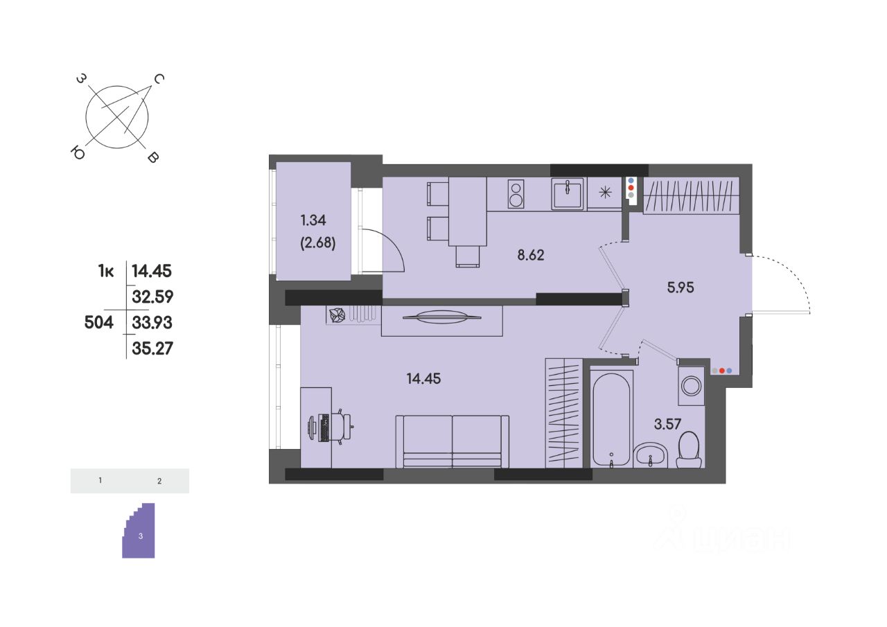 Общая площадь33,93 м²