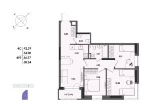 Общая площадь66,57 м²