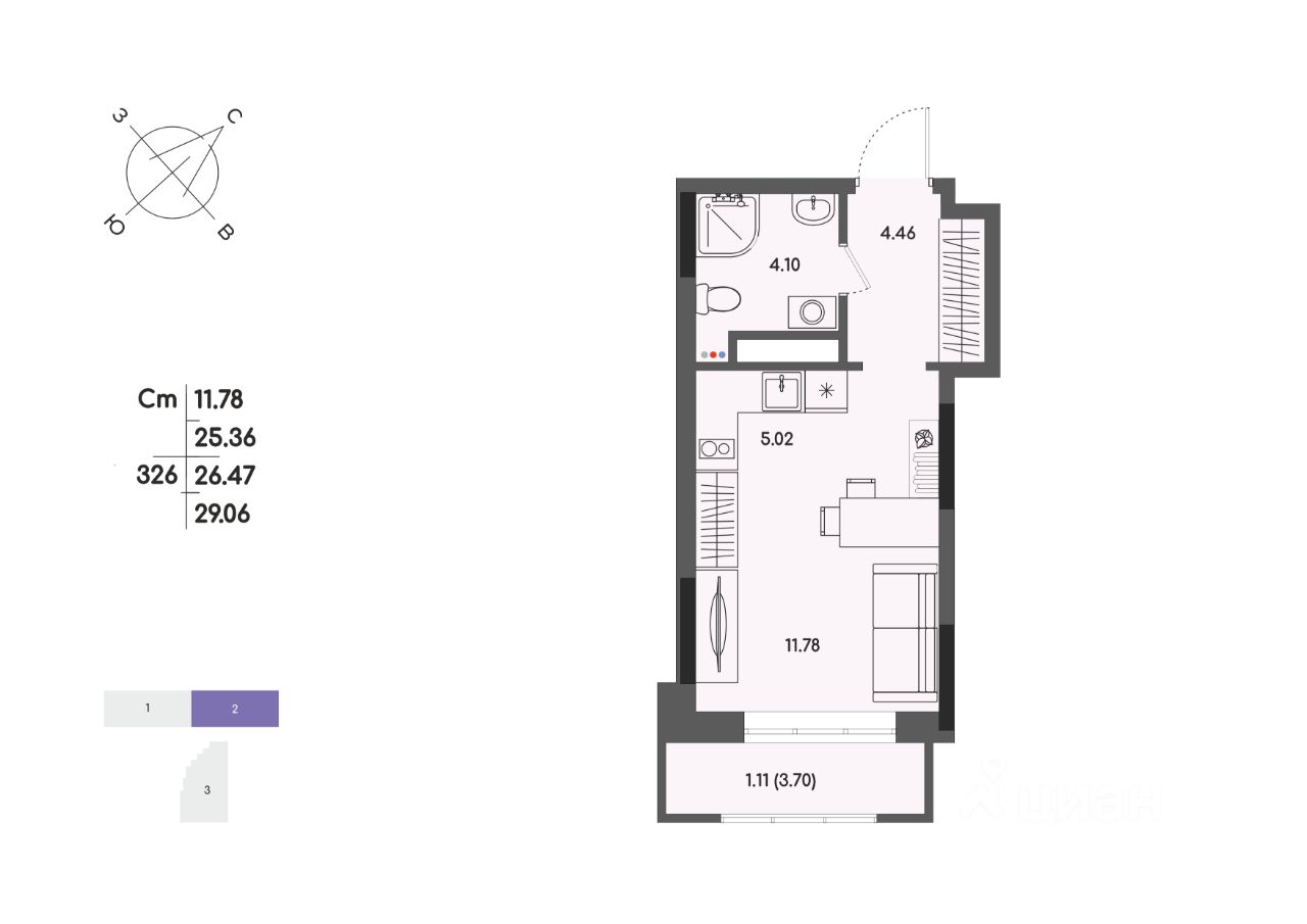 Общая площадь26,47 м²