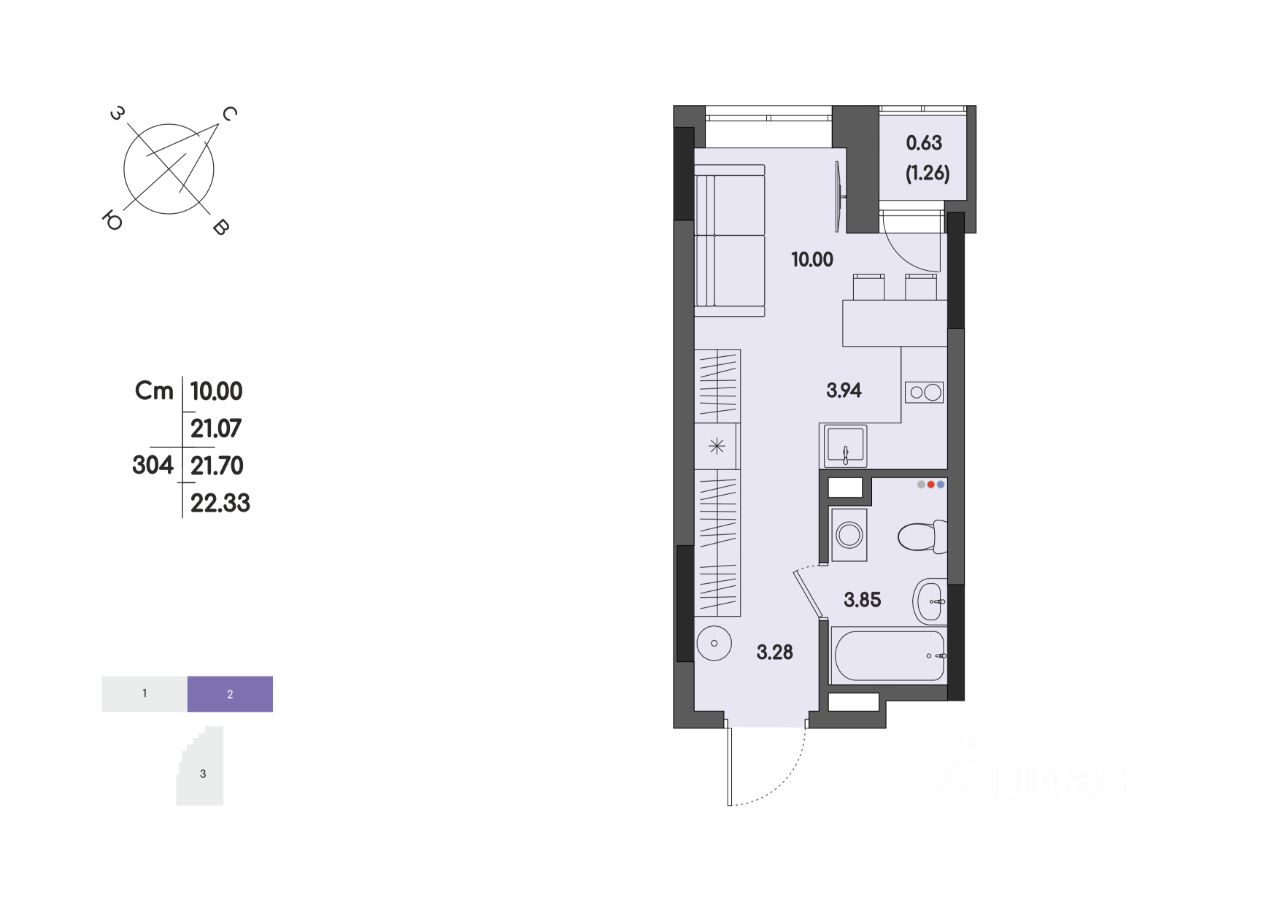 Общая площадь21,7 м²