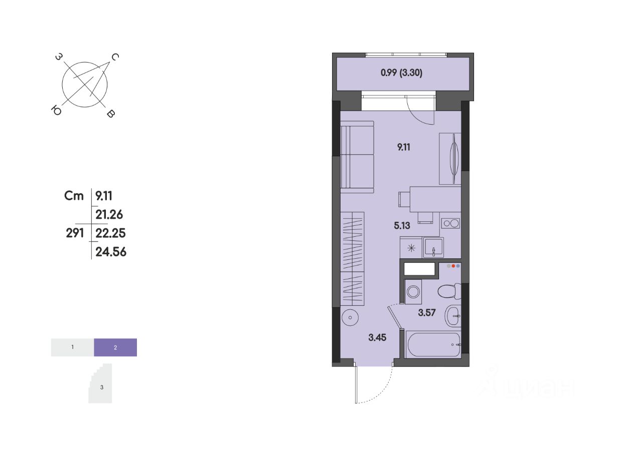 Общая площадь22,25 м²