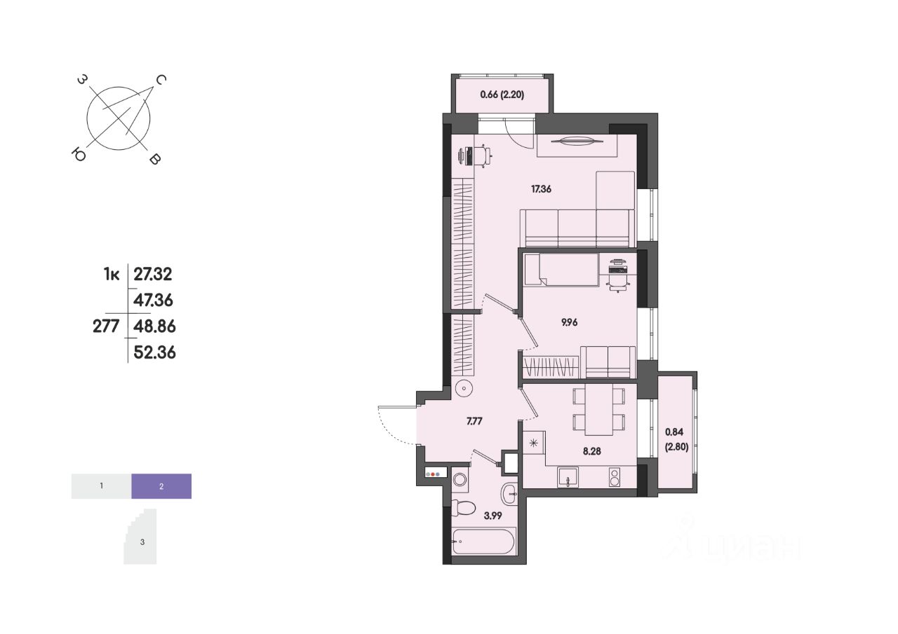 Общая площадь48,86 м²