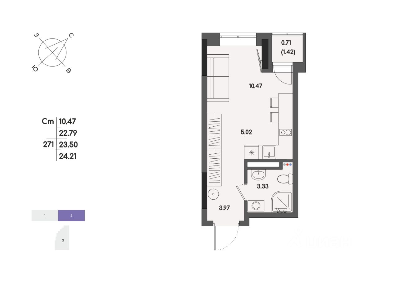 Общая площадь23,5 м²