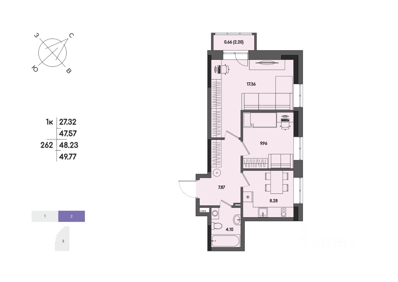 Общая площадь48,23 м²