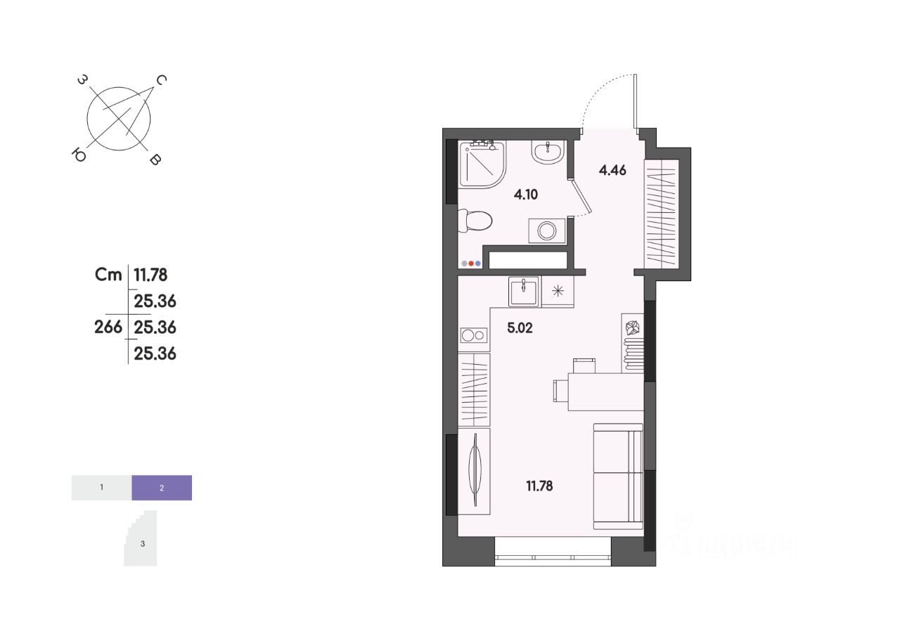 Общая площадь25,36 м²