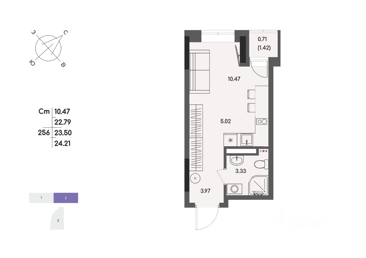 Общая площадь23,5 м²