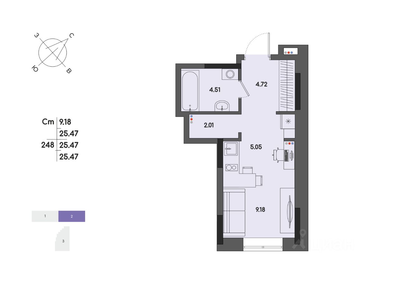 Общая площадь25,47 м²