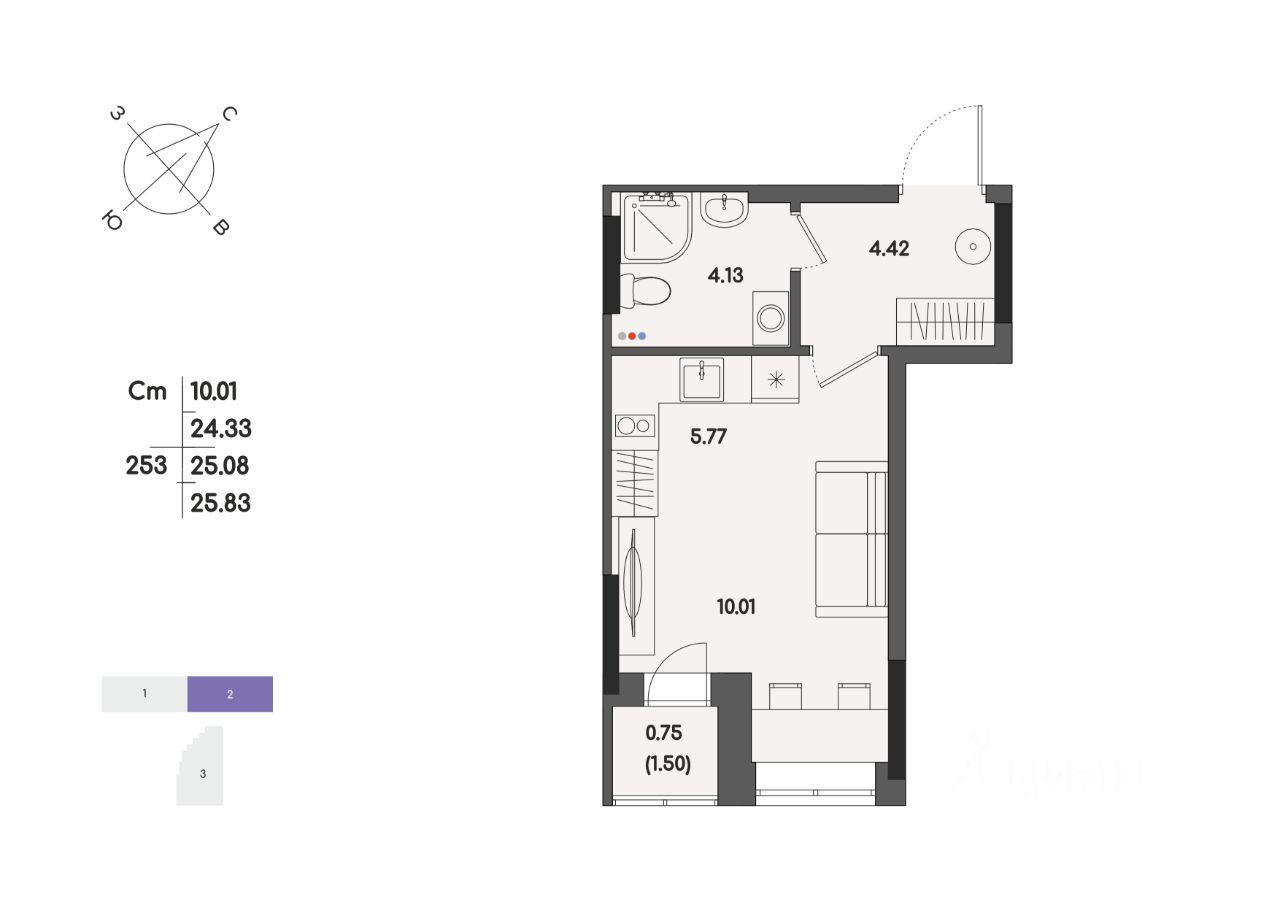 Общая площадь25,08 м²