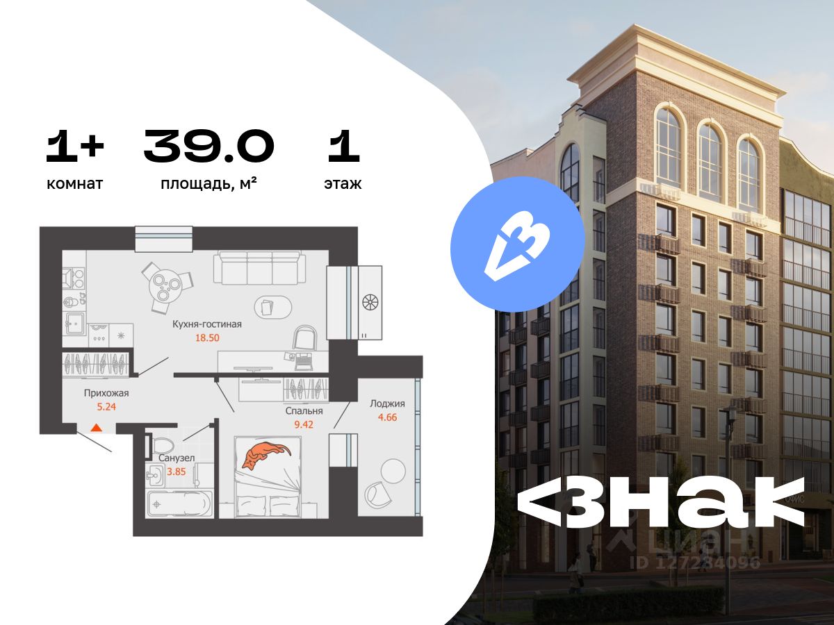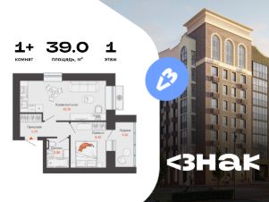 В новом жилом комплексе комфорт-класса "Знак" продается 1-комнатная квартира площадью 39.00 кв. м с отделкой white box. Квартира находится на 1 этаже 7-этажного корпуса 1. Девелопер проекта - федеральный застройщик "Железно".