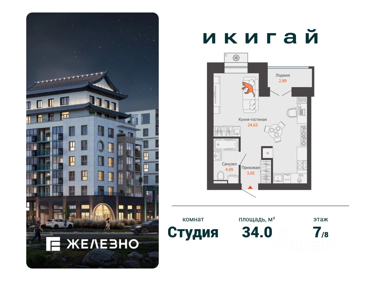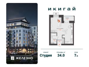 Продается студия площадью 34.00 кв. м с предчистовой отделкой. Квартира находится в жилом комплексе комфорт+ "Икигай" от федерального девелопера "Железно".