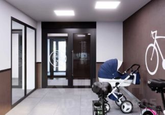 Входные группы премиум-класса. Стильные холлы из натуральных материалов, просторные колясочные с поддонами для мытья колёс и лапомойками. Вход без ступенек — удобно для мам и велосипедистов.
