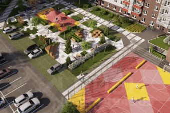 Двор-парк. Закрытая территория с ламповой подсветкой, зонами для пикников, детским песочником под перголой и большой спортплощадкой с фан-зоной для соревнований.