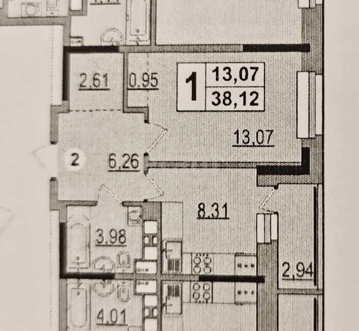 • Удобная планировка: просторная комната, светлая кухня, балкон