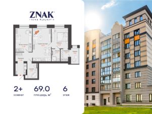 Продается 2-комнатная квартира площадью 69.00 кв. м. с предчистовой отделкой. Квартира находится в жилом комплексе комфорт-класса ZNAK, расположенном в районе ул. Берша.