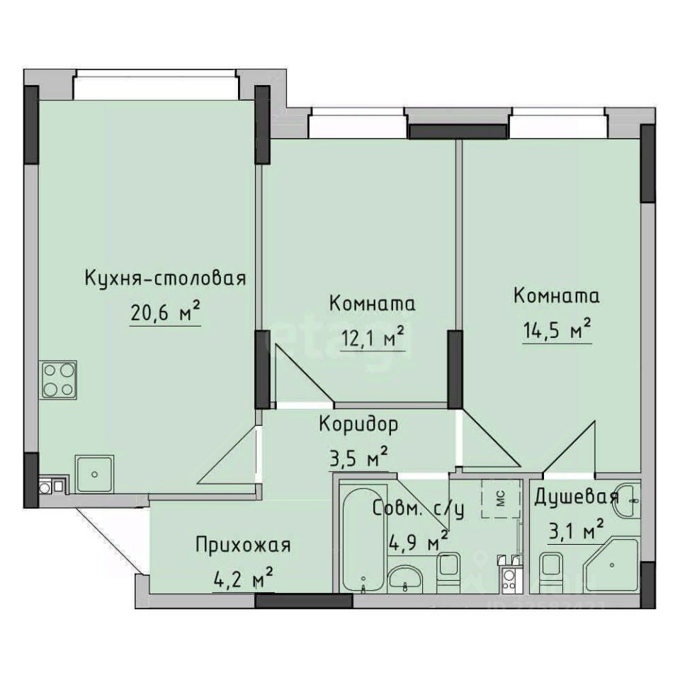 56,9 м²