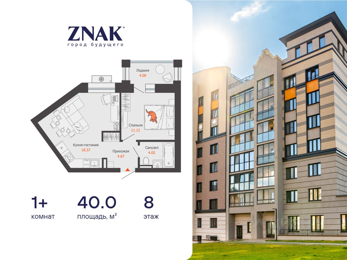 Продается 1-комнатная квартира площадью 40.00 кв. м. с предчистовой отделкой. Квартира находится в жилом комплексе комфорт-класса ZNAK, расположенном в районе ул. Берша.
