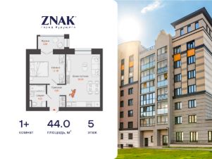 Продается 1-комнатная квартира площадью 44.00 кв. м. с предчистовой отделкой. Квартира находится в жилом комплексе комфорт-класса ZNAK, расположенном в районе ул. Берша.