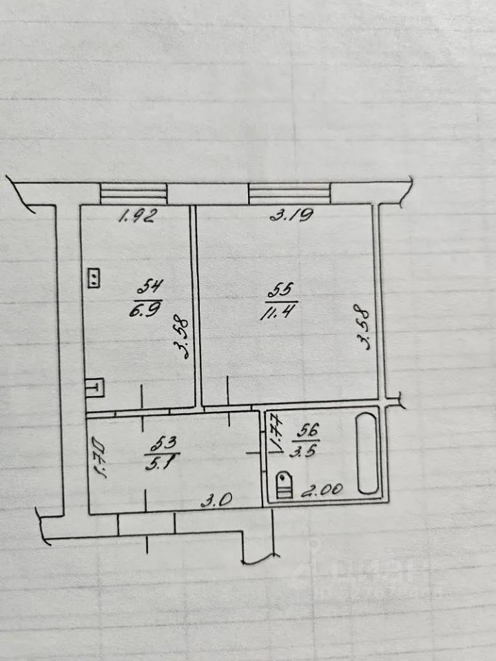 Однокомнатная квартира в кирпичном доме,