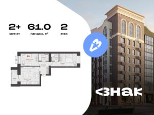 В новом жилом комплексе комфорт-класса "Знак" продается 2-комнатная квартира площадью 61.00 кв. м с отделкой white box. Квартира находится на 2 этаже 7-этажного корпуса 1. Девелопер проекта - федеральный застройщик "Железно".