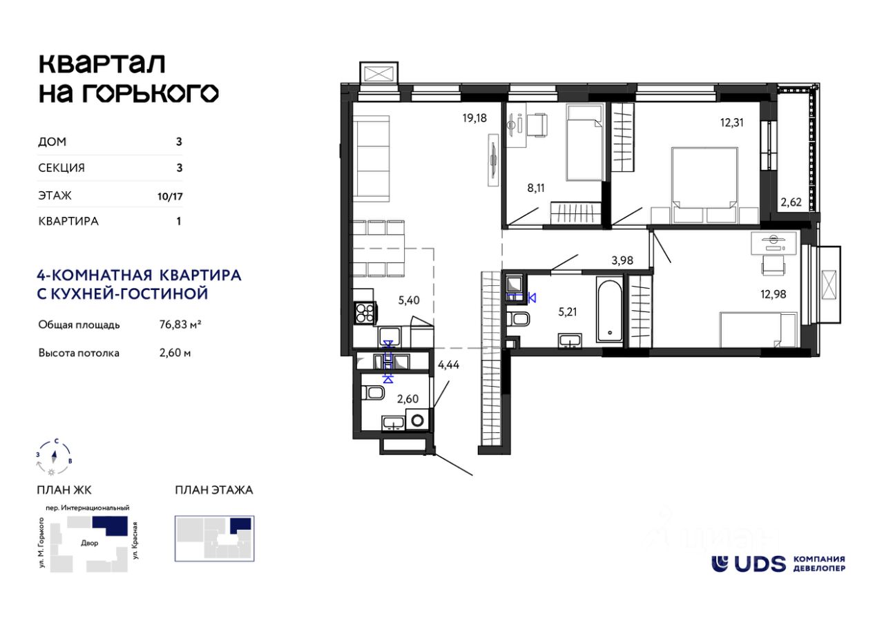 Старт продаж! Успейте забронировать квартиру по ценам 2025-го года. Два дома уже построены и заселены. Идёт строительство последнего дома комплекса — можно переехать сразу в готовую инфраструктуру в центре Ижевска. "Квартал на Горького" — современный жилой комплекс от UDS в историческом центре Ижевска: — 10 минут до набережной и Летнего сада — 2 минуты до остановки, 22 маршрута транспорта — Школа 25, школа искусств 2, детские сады и театры — в шаговой доступности — Невысокая застройка — дома от 6 до 16 этажей — Огороженный двор без машин, безопасный для детей — Планировки - от студий до трехкомнатных — Индивидуальные кладовые Жилье в центре надежный ликвид, с которым вы всегда будете в плюсе. Выбирайте ЖК "Квартал на Горького" для жизни и инвестиций.