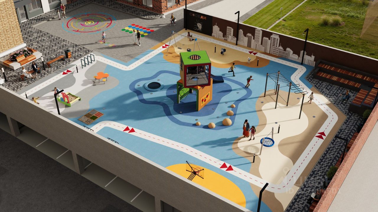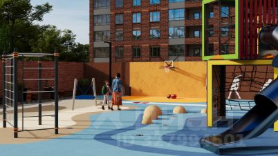 Двор жилого комплекса будет расположен на стилобате. Его благоустройство предполагает обустроенную детскую зону и зону отдыха для взрослых. Для малышей на придомовой территории дома DRG GRUPP предусмотрели уникальную площадку с песочницей, качественными детскими игровым и спортивным комплексом из натуральных материалов.
