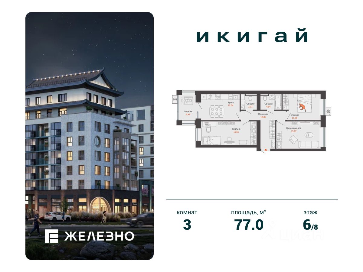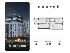 Продается 3-комнатная квартира площадью 77.00 кв. м с предчистовой отделкой. Квартира находится в жилом комплексе комфорт+ "Икигай" от федерального девелопера "Железно".