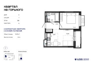 Продаётся 2-комнатная квартира с кухней-гостиной от девелопера UDS в ЖК "Квартал на Горького", дом 3, секция 1, на 2 этаже.