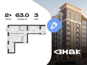 В новом жилом комплексе комфорт-класса "Знак" продается 2-комнатная квартира площадью 63.00 кв. м с отделкой white box. Квартира находится на 3 этаже 8-этажного корпуса 2. Девелопер проекта - федеральный застройщик "Железно".