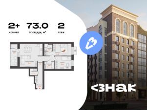 В новом жилом комплексе комфорт-класса "Знак" продается 2-комнатная квартира площадью 73.00 кв. м с отделкой white box. Квартира находится на 2 этаже 8-этажного корпуса 2. Девелопер проекта - федеральный застройщик "Железно".