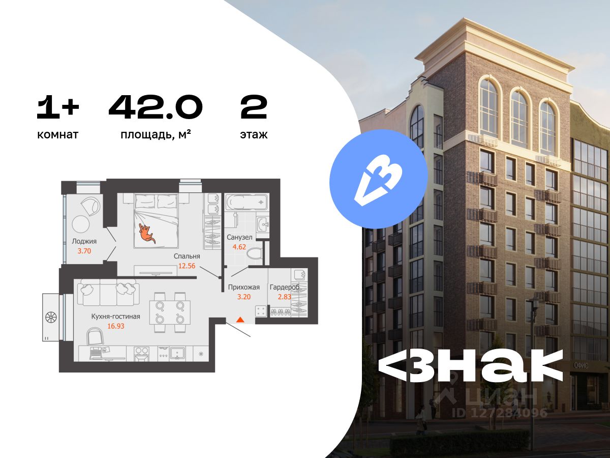 В новом жилом комплексе комфорт-класса "Знак" продается 1-комнатная квартира площадью 42.00 кв. м с отделкой white box. Квартира находится на 2 этаже 8-этажного корпуса 2. Девелопер проекта - федеральный застройщик "Железно". "Знак" - начало добрых перемен. Это жилой комплекс, где всё складывается правильно. Перемены появляются там, где для них создана среда. Когда парк под окнами, а не на другом конце города. Когда коворкинг рядом, и можно сосредоточиться, не уезжая в центр. Когда во дворе - площадки для тренировок, йоги, движения. "Знак" - как символ решений, которые привели к лучшему. Знаковое место Здесь вас ждут оживлённые площади, наполненные событиями и городским ритмом, и уютные бульвары для неспешных прогулок. Для ценителей тишины и созерцания найдутся уединённые уголки, а поклонников активного образа жизни ждут современные и технологичные спортивные площадки. Архитектура как знак качества Жилой комплекс "Знак" состоит из 6 секций высотой 7-8 этажей, лаконичный ансамбль которых окружает внутренний зеленый двор с местами для отдыха жителей. Природные материалы - древесина, камень, - натуральные оттенки земли и травы усиливают гармонию с природой. Комбинированный вентилируемый фасад, прочный кирпичный фундамент, большие окна с 2-камерными стеклопакетами и 5-камерным ПВХ-профилем гарантируют долгий срок эксплуатации, тишину и благоприятный микроклимат в каждой квартире. Лобби: искусство, в котором живут Продуманное пространство с мягкими креслами и камерными зонами отдыха создаёт атмосферу уюта, где искусство становится частью повседневности. Это вдохновляющая среда, которая пробуждает чувства и воображение с первого взгляда. Дизайн лобби воплощает концепцию эмоций в искусстве через пластику и форму. Доминантой становятся выразительные гипсовые барельефы в виде масок, объемность которых подчеркивает многоуровневое освещение. В отделке гармонично сочетаются натуральные материалы: металл контрастирует с тёплым гипсом, а керамогранит - с текстильными панно в зонах отдыха. О застройщике "Железно" - федеральный девелопер со смыслом, создающий умные мини-города с развитой инфраструктурой и высоким уровнем сервиса. За 14 лет беспрерывного развития и стремительного роста компания точно определила своё предназначение: мы с любовью и уважением к человеку создаём города будущего, меняя мир и жизнь людей к лучшему. • 6 городов России: Киров, Ижевск, Ульяновск, Екатеринбург, Пермь, Волгоград. • Строим парки, школы и детские сады. • Земельный банк более 2 000 000 м2. • ТОП-4 застройщиков России по качеству жилья (ЕРЗ.рф от июня 2025). • 28 проектов. • 6-кратные победители и 25-кратные финалисты премии Urban Awards.