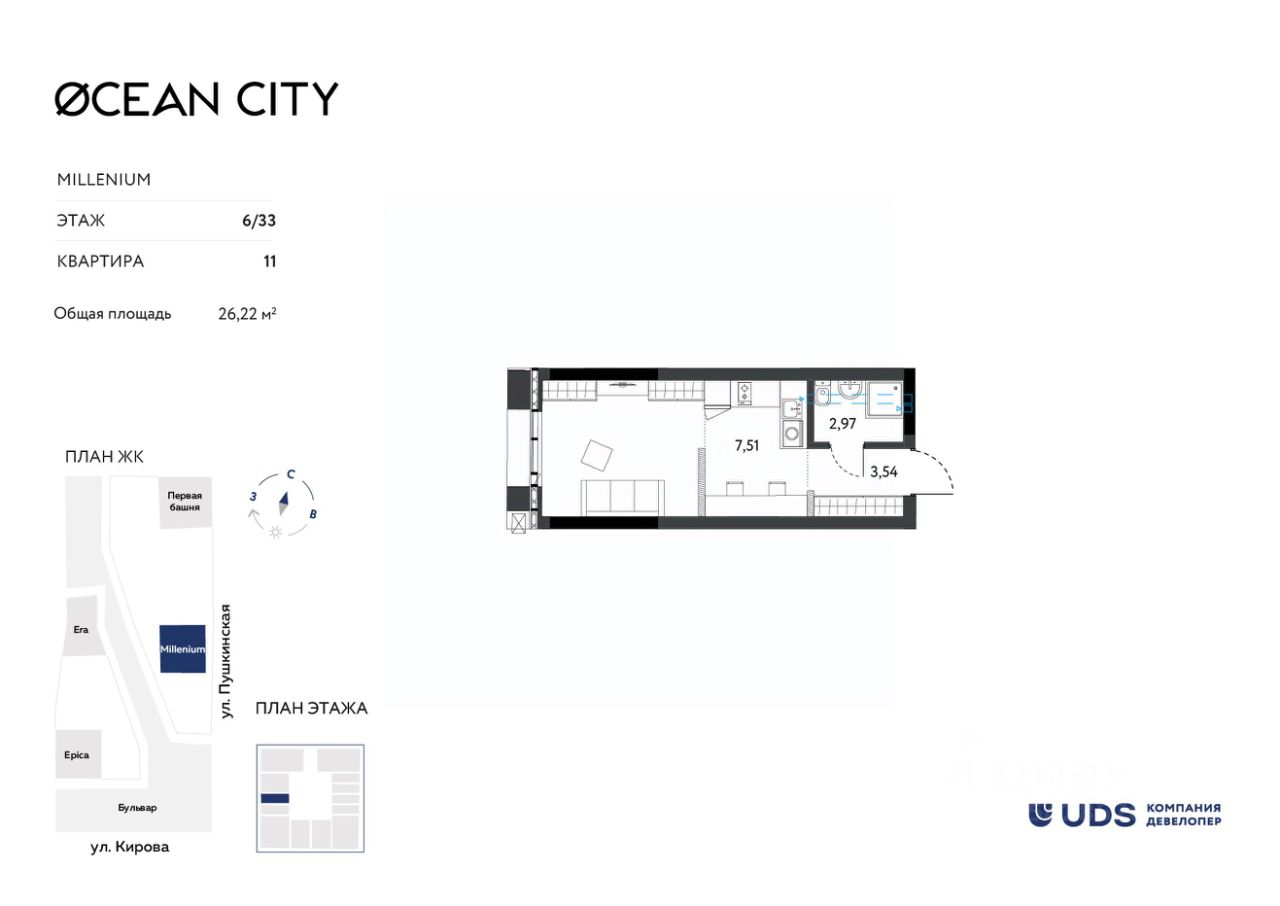 Лучший жилой небоскреб. Самый высокий дом в Ижевске, который видно даже с самолета. OCEAN CITY (ЖК Оушен сити) - для тех, кто хочет жить на высоте и ценит статус. Панорамные виды из окон, которые будут всегда с вами. Неземной двор на высоте 8 метров - эксклюзивная приватная территория только для резидентов OCEAN CITY (ЖК Оушен сити). Зоны отдыха, дизайнерские детские площадки, open-air тренажеры. 10 000 м² пешеходного бульвара "ОКЕАН" — стильное продолжение вашего пространства. Вечерние променады, уютные кафе, живая атмосфера — дорога домой превратиться в удовольствие. Бутиковый ритейл у вас под ногами — кофейни, рестораны, spa-салоны, премиальные магазины. На массаж и за кофе в тапочках, не выходя на улицу. Технологии комфорта нового поколения: Бесключевой доступ — дом распознаёт вас автоматически. Премиальные высокоскоростные лифты с увеличенными потолками — перемещения в стиле CITY. Свободные планировки — воплотите любую дизайн концепцию без границ. Панорамное остекление с интегрированным климат-контролем — идеальный микроклимат без компромиссов. Тёплый подземный паркинг 24/7 — ваш автомобиль в безопасности в любое время года. Инвестиция в престижную недвижимость — OCEAN CITY (ЖК ОКЕАН сити) не просто жильё, а актив, который будет расти в цене. При покупке недвижимости в домах UDS вы получаете в подарок 6 или 12 месяцев дополнительного сервиса отельного уровня. В зависимости от пакета в программу входит: масштабная уборка после ремонта, генеральная и регулярная поддерживающая уборка, химчистка мебели, мойка окон, глажка вещей, личный шеф-повар на праздник. Наслаждайтесь жизнью в новой квартире с первого дня и не думайте о бытовых вопросах.