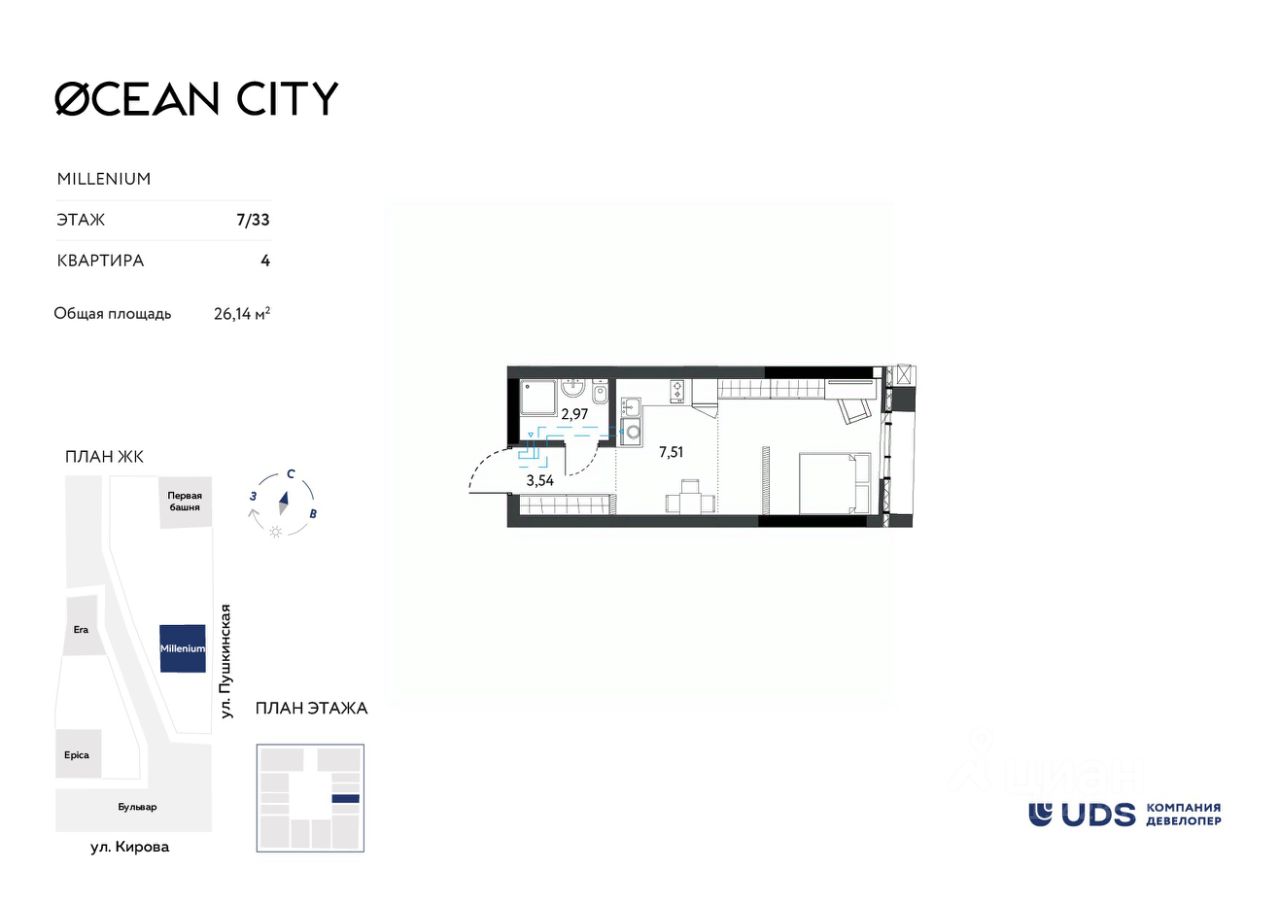Лучший жилой небоскреб. Самый высокий дом в Ижевске, который видно даже с самолета. OCEAN CITY (ЖК Оушен сити) - для тех, кто хочет жить на высоте и ценит статус. Панорамные виды из окон, которые будут всегда с вами. Неземной двор на высоте 8 метров - эксклюзивная приватная территория только для резидентов OCEAN CITY (ЖК Оушен сити). Зоны отдыха, дизайнерские детские площадки, open-air тренажеры. 10 000 м² пешеходного бульвара "ОКЕАН" — стильное продолжение вашего пространства. Вечерние променады, уютные кафе, живая атмосфера — дорога домой превратиться в удовольствие. Бутиковый ритейл у вас под ногами — кофейни, рестораны, spa-салоны, премиальные магазины. На массаж и за кофе в тапочках, не выходя на улицу. Технологии комфорта нового поколения: Бесключевой доступ — дом распознаёт вас автоматически. Премиальные высокоскоростные лифты с увеличенными потолками — перемещения в стиле CITY. Свободные планировки — воплотите любую дизайн концепцию без границ. Панорамное остекление с интегрированным климат-контролем — идеальный микроклимат без компромиссов. Тёплый подземный паркинг 24/7 — ваш автомобиль в безопасности в любое время года. Инвестиция в престижную недвижимость — OCEAN CITY (ЖК ОКЕАН сити) не просто жильё, а актив, который будет расти в цене. При покупке недвижимости в домах UDS вы получаете в подарок 6 или 12 месяцев дополнительного сервиса отельного уровня. В зависимости от пакета в программу входит: масштабная уборка после ремонта, генеральная и регулярная поддерживающая уборка, химчистка мебели, мойка окон, глажка вещей, личный шеф-повар на праздник. Наслаждайтесь жизнью в новой квартире с первого дня и не думайте о бытовых вопросах.