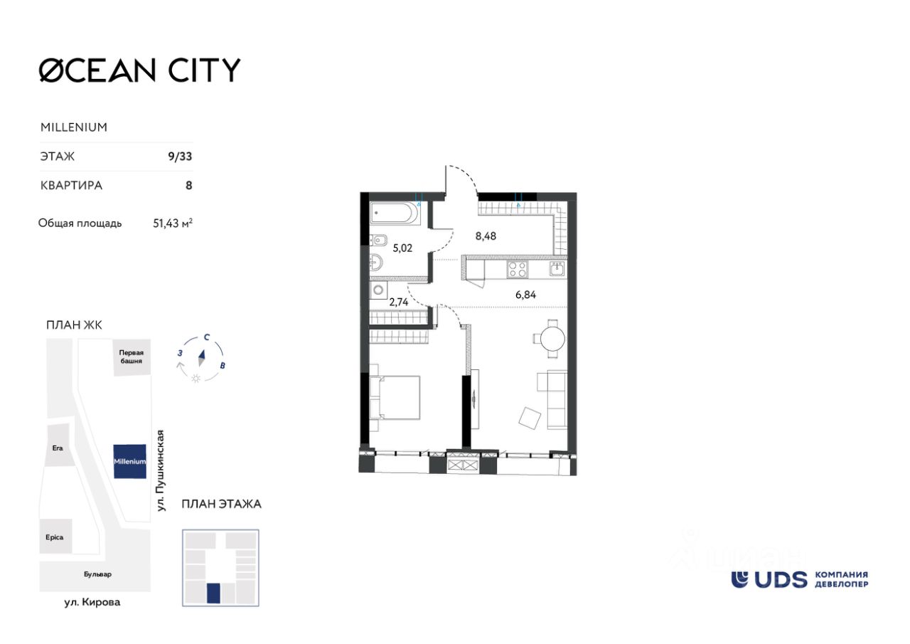 Лучший жилой небоскреб. Самый высокий дом в Ижевске, который видно даже с самолета. OCEAN CITY (ЖК Оушен сити) - для тех, кто хочет жить на высоте и ценит статус. Панорамные виды из окон, которые будут всегда с вами. Неземной двор на высоте 8 метров - эксклюзивная приватная территория только для резидентов OCEAN CITY (ЖК Оушен сити). Зоны отдыха, дизайнерские детские площадки, open-air тренажеры. 10 000 м² пешеходного бульвара "ОКЕАН" — стильное продолжение вашего пространства. Вечерние променады, уютные кафе, живая атмосфера — дорога домой превратиться в удовольствие. Бутиковый ритейл у вас под ногами — кофейни, рестораны, spa-салоны, премиальные магазины. На массаж и за кофе в тапочках, не выходя на улицу. Технологии комфорта нового поколения: Бесключевой доступ — дом распознаёт вас автоматически. Премиальные высокоскоростные лифты с увеличенными потолками — перемещения в стиле CITY. Свободные планировки — воплотите любую дизайн концепцию без границ. Панорамное остекление с интегрированным климат-контролем — идеальный микроклимат без компромиссов. Тёплый подземный паркинг 24/7 — ваш автомобиль в безопасности в любое время года. Инвестиция в престижную недвижимость — OCEAN CITY (ЖК ОКЕАН сити) не просто жильё, а актив, который будет расти в цене. При покупке недвижимости в домах UDS вы получаете в подарок 6 или 12 месяцев дополнительного сервиса отельного уровня. В зависимости от пакета в программу входит: масштабная уборка после ремонта, генеральная и регулярная поддерживающая уборка, химчистка мебели, мойка окон, глажка вещей, личный шеф-повар на праздник. Наслаждайтесь жизнью в новой квартире с первого дня и не думайте о бытовых вопросах.