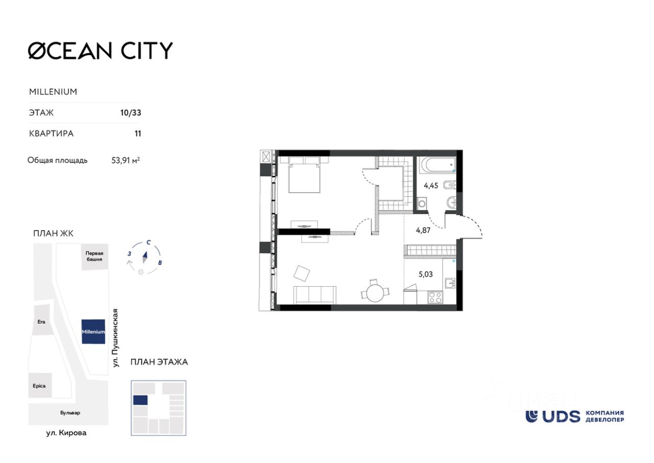 Лучший жилой небоскреб. Самый высокий дом в Ижевске, который видно даже с самолета. OCEAN CITY (ЖК Оушен сити) - для тех, кто хочет жить на высоте и ценит статус. Панорамные виды из окон, которые будут всегда с вами. Неземной двор на высоте 8 метров - эксклюзивная приватная территория только для резидентов OCEAN CITY (ЖК Оушен сити). Зоны отдыха, дизайнерские детские площадки, open-air тренажеры. 10 000 м² пешеходного бульвара "ОКЕАН" — стильное продолжение вашего пространства. Вечерние променады, уютные кафе, живая атмосфера — дорога домой превратиться в удовольствие. Бутиковый ритейл у вас под ногами — кофейни, рестораны, spa-салоны, премиальные магазины. На массаж и за кофе в тапочках, не выходя на улицу. Технологии комфорта нового поколения: Бесключевой доступ — дом распознаёт вас автоматически. Премиальные высокоскоростные лифты с увеличенными потолками — перемещения в стиле CITY. Свободные планировки — воплотите любую дизайн концепцию без границ. Панорамное остекление с интегрированным климат-контролем — идеальный микроклимат без компромиссов. Тёплый подземный паркинг 24/7 — ваш автомобиль в безопасности в любое время года. Инвестиция в престижную недвижимость — OCEAN CITY (ЖК ОКЕАН сити) не просто жильё, а актив, который будет расти в цене. При покупке недвижимости в домах UDS вы получаете в подарок 6 или 12 месяцев дополнительного сервиса отельного уровня. В зависимости от пакета в программу входит: масштабная уборка после ремонта, генеральная и регулярная поддерживающая уборка, химчистка мебели, мойка окон, глажка вещей, личный шеф-повар на праздник. Наслаждайтесь жизнью в новой квартире с первого дня и не думайте о бытовых вопросах.