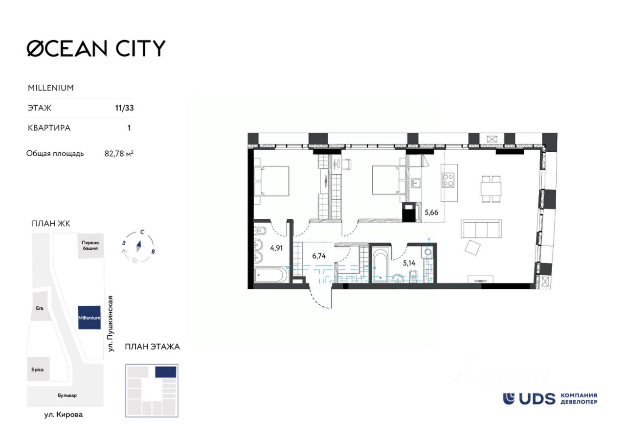 Лучший жилой небоскреб. Самый высокий дом в Ижевске, который видно даже с самолета. OCEAN CITY (ЖК Оушен сити) - для тех, кто хочет жить на высоте и ценит статус. Панорамные виды из окон, которые будут всегда с вами. Неземной двор на высоте 8 метров - эксклюзивная приватная территория только для резидентов OCEAN CITY (ЖК Оушен сити). Зоны отдыха, дизайнерские детские площадки, open-air тренажеры. 10 000 м² пешеходного бульвара "ОКЕАН" — стильное продолжение вашего пространства. Вечерние променады, уютные кафе, живая атмосфера — дорога домой превратиться в удовольствие. Бутиковый ритейл у вас под ногами — кофейни, рестораны, spa-салоны, премиальные магазины. На массаж и за кофе в тапочках, не выходя на улицу. Технологии комфорта нового поколения: Бесключевой доступ — дом распознаёт вас автоматически. Премиальные высокоскоростные лифты с увеличенными потолками — перемещения в стиле CITY. Свободные планировки — воплотите любую дизайн концепцию без границ. Панорамное остекление с интегрированным климат-контролем — идеальный микроклимат без компромиссов. Тёплый подземный паркинг 24/7 — ваш автомобиль в безопасности в любое время года. Инвестиция в престижную недвижимость — OCEAN CITY (ЖК ОКЕАН сити) не просто жильё, а актив, который будет расти в цене. При покупке недвижимости в домах UDS вы получаете в подарок 6 или 12 месяцев дополнительного сервиса отельного уровня. В зависимости от пакета в программу входит: масштабная уборка после ремонта, генеральная и регулярная поддерживающая уборка, химчистка мебели, мойка окон, глажка вещей, личный шеф-повар на праздник. Наслаждайтесь жизнью в новой квартире с первого дня и не думайте о бытовых вопросах.