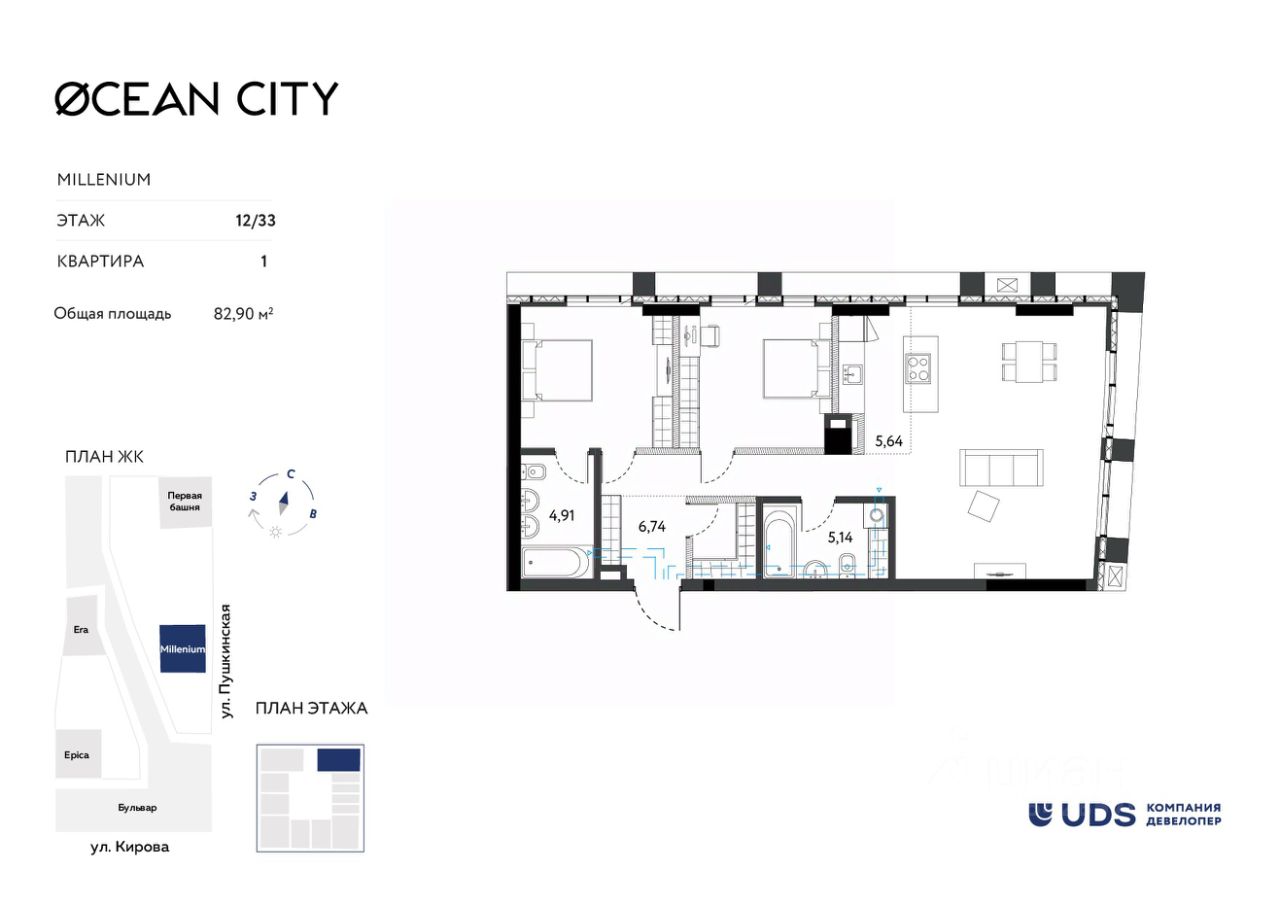 Лучший жилой небоскреб. Самый высокий дом в Ижевске, который видно даже с самолета. OCEAN CITY (ЖК Оушен сити) - для тех, кто хочет жить на высоте и ценит статус. Панорамные виды из окон, которые будут всегда с вами. Неземной двор на высоте 8 метров - эксклюзивная приватная территория только для резидентов OCEAN CITY (ЖК Оушен сити). Зоны отдыха, дизайнерские детские площадки, open-air тренажеры. 10 000 м² пешеходного бульвара "ОКЕАН" — стильное продолжение вашего пространства. Вечерние променады, уютные кафе, живая атмосфера — дорога домой превратиться в удовольствие. Бутиковый ритейл у вас под ногами — кофейни, рестораны, spa-салоны, премиальные магазины. На массаж и за кофе в тапочках, не выходя на улицу. Технологии комфорта нового поколения: Бесключевой доступ — дом распознаёт вас автоматически. Премиальные высокоскоростные лифты с увеличенными потолками — перемещения в стиле CITY. Свободные планировки — воплотите любую дизайн концепцию без границ. Панорамное остекление с интегрированным климат-контролем — идеальный микроклимат без компромиссов. Тёплый подземный паркинг 24/7 — ваш автомобиль в безопасности в любое время года. Инвестиция в престижную недвижимость — OCEAN CITY (ЖК ОКЕАН сити) не просто жильё, а актив, который будет расти в цене. При покупке недвижимости в домах UDS вы получаете в подарок 6 или 12 месяцев дополнительного сервиса отельного уровня. В зависимости от пакета в программу входит: масштабная уборка после ремонта, генеральная и регулярная поддерживающая уборка, химчистка мебели, мойка окон, глажка вещей, личный шеф-повар на праздник. Наслаждайтесь жизнью в новой квартире с первого дня и не думайте о бытовых вопросах.