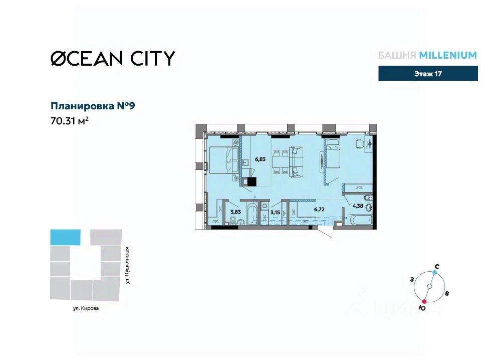 Общая площадь70,31 м²