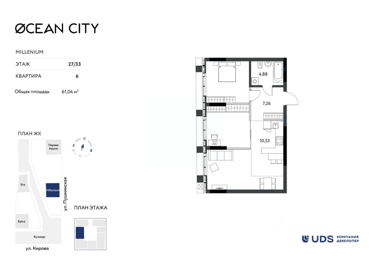 — Площадь 61,04 м² — оптимальный формат для комфортной жизни или инвестиций.