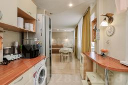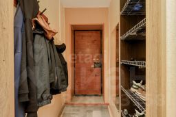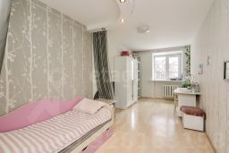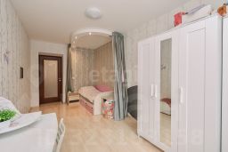 Окна выходят на восток и запад, балкон длиной 6 метров застеклен. В стоимость включено парковочное место, а также часть техники и мебели: кухонный гарнитур с плитой и духовым шкафом, холодильник и стиральная машина.