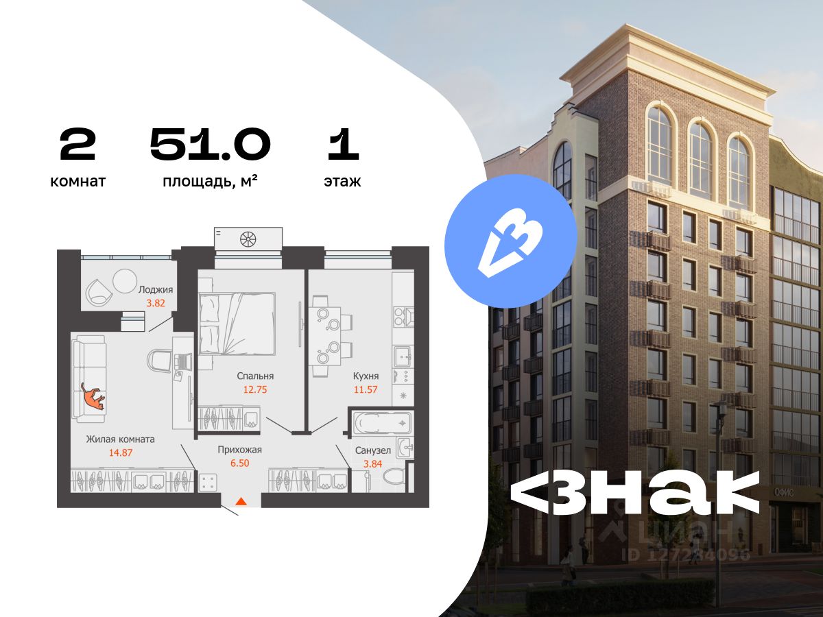 В новом жилом комплексе комфорт-класса "Знак" продается 2-комнатная квартира площадью 51.00 кв. м с отделкой white box. Квартира находится на 1 этаже 7-этажного корпуса 2. Девелопер проекта - федеральный застройщик "Железно". "Знак" - начало добрых перемен. Это жилой комплекс, где всё складывается правильно. Перемены появляются там, где для них создана среда. Когда парк под окнами, а не на другом конце города. Когда коворкинг рядом, и можно сосредоточиться, не уезжая в центр. Когда во дворе - площадки для тренировок, йоги, движения. "Знак" - как символ решений, которые привели к лучшему. Знаковое место Здесь вас ждут оживлённые площади, наполненные событиями и городским ритмом, и уютные бульвары для неспешных прогулок. Для ценителей тишины и созерцания найдутся уединённые уголки, а поклонников активного образа жизни ждут современные и технологичные спортивные площадки. Архитектура как знак качества Жилой комплекс "Знак" состоит из 6 секций высотой 7-8 этажей, лаконичный ансамбль которых окружает внутренний зеленый двор с местами для отдыха жителей. Природные материалы - древесина, камень, - натуральные оттенки земли и травы усиливают гармонию с природой. Комбинированный вентилируемый фасад, прочный кирпичный фундамент, большие окна с 2-камерными стеклопакетами и 5-камерным ПВХ-профилем гарантируют долгий срок эксплуатации, тишину и благоприятный микроклимат в каждой квартире. Лобби: искусство, в котором живут Продуманное пространство с мягкими креслами и камерными зонами отдыха создаёт атмосферу уюта, где искусство становится частью повседневности. Это вдохновляющая среда, которая пробуждает чувства и воображение с первого взгляда. Дизайн лобби воплощает концепцию эмоций в искусстве через пластику и форму. Доминантой становятся выразительные гипсовые барельефы в виде масок, объемность которых подчеркивает многоуровневое освещение. В отделке гармонично сочетаются натуральные материалы: металл контрастирует с тёплым гипсом, а керамогранит - с текстильными панно в зонах отдыха. О застройщике "Железно" - федеральный девелопер со смыслом, создающий умные мини-города с развитой инфраструктурой и высоким уровнем сервиса. За 14 лет беспрерывного развития и стремительного роста компания точно определила своё предназначение: мы с любовью и уважением к человеку создаём города будущего, меняя мир и жизнь людей к лучшему. • 6 городов России: Киров, Ижевск, Ульяновск, Екатеринбург, Пермь, Волгоград. • Строим парки, школы и детские сады. • Земельный банк более 2 000 000 м2. • ТОП-4 застройщиков России по качеству жилья (ЕРЗ.рф от июня 2025). • 28 проектов. • 6-кратные победители и 25-кратные финалисты премии Urban Awards.