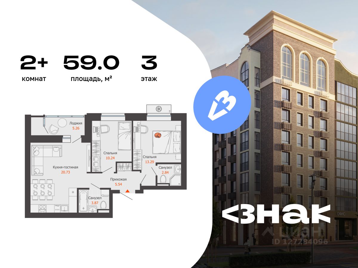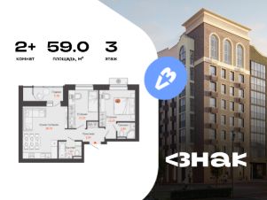 В новом жилом комплексе комфорт-класса "Знак" продается 2-комнатная квартира площадью 59.00 кв. м с отделкой white box. Квартира находится на 3 этаже 7-этажного корпуса 2. Девелопер проекта - федеральный застройщик "Железно".