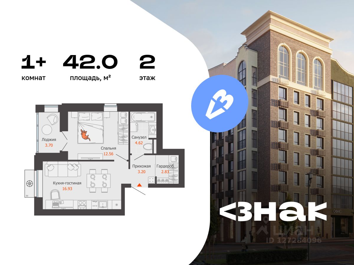 В новом жилом комплексе комфорт-класса "Знак" продается 1-комнатная квартира площадью 42.00 кв. м с отделкой white box. Квартира находится на 2 этаже 6-этажного корпуса 2. Девелопер проекта - федеральный застройщик "Железно". "Знак" - начало добрых перемен. Это жилой комплекс, где всё складывается правильно. Перемены появляются там, где для них создана среда. Когда парк под окнами, а не на другом конце города. Когда коворкинг рядом, и можно сосредоточиться, не уезжая в центр. Когда во дворе - площадки для тренировок, йоги, движения. "Знак" - как символ решений, которые привели к лучшему. Знаковое место Здесь вас ждут оживлённые площади, наполненные событиями и городским ритмом, и уютные бульвары для неспешных прогулок. Для ценителей тишины и созерцания найдутся уединённые уголки, а поклонников активного образа жизни ждут современные и технологичные спортивные площадки. Архитектура как знак качества Жилой комплекс "Знак" состоит из 6 секций высотой 7-8 этажей, лаконичный ансамбль которых окружает внутренний зеленый двор с местами для отдыха жителей. Природные материалы - древесина, камень, - натуральные оттенки земли и травы усиливают гармонию с природой. Комбинированный вентилируемый фасад, прочный кирпичный фундамент, большие окна с 2-камерными стеклопакетами и 5-камерным ПВХ-профилем гарантируют долгий срок эксплуатации, тишину и благоприятный микроклимат в каждой квартире. Лобби: искусство, в котором живут Продуманное пространство с мягкими креслами и камерными зонами отдыха создаёт атмосферу уюта, где искусство становится частью повседневности. Это вдохновляющая среда, которая пробуждает чувства и воображение с первого взгляда. Дизайн лобби воплощает концепцию эмоций в искусстве через пластику и форму. Доминантой становятся выразительные гипсовые барельефы в виде масок, объемность которых подчеркивает многоуровневое освещение. В отделке гармонично сочетаются натуральные материалы: металл контрастирует с тёплым гипсом, а керамогранит - с текстильными панно в зонах отдыха. О застройщике "Железно" - федеральный девелопер со смыслом, создающий умные мини-города с развитой инфраструктурой и высоким уровнем сервиса. За 14 лет беспрерывного развития и стремительного роста компания точно определила своё предназначение: мы с любовью и уважением к человеку создаём города будущего, меняя мир и жизнь людей к лучшему. • 6 городов России: Киров, Ижевск, Ульяновск, Екатеринбург, Пермь, Волгоград. • Строим парки, школы и детские сады. • Земельный банк более 2 000 000 м2. • ТОП-4 застройщиков России по качеству жилья (ЕРЗ.рф от июня 2025). • 28 проектов. • 6-кратные победители и 25-кратные финалисты премии Urban Awards.
