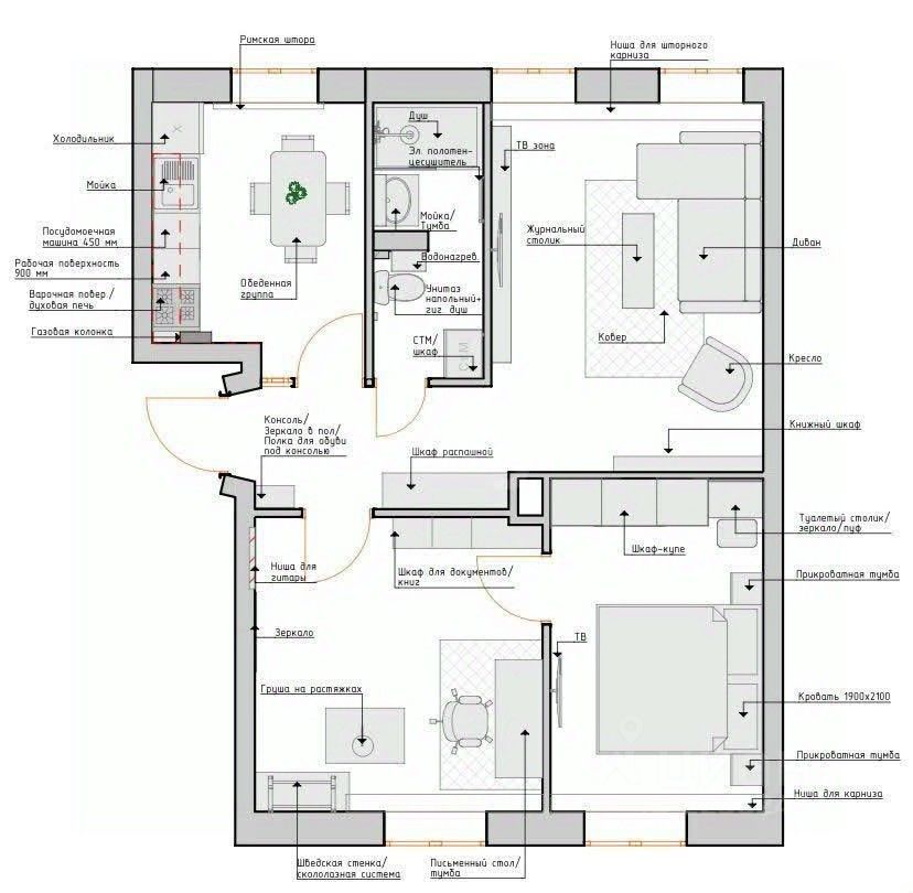 При желании можем оставить: кухонную технику, шторы, шкаф, сантехнику, люстры.